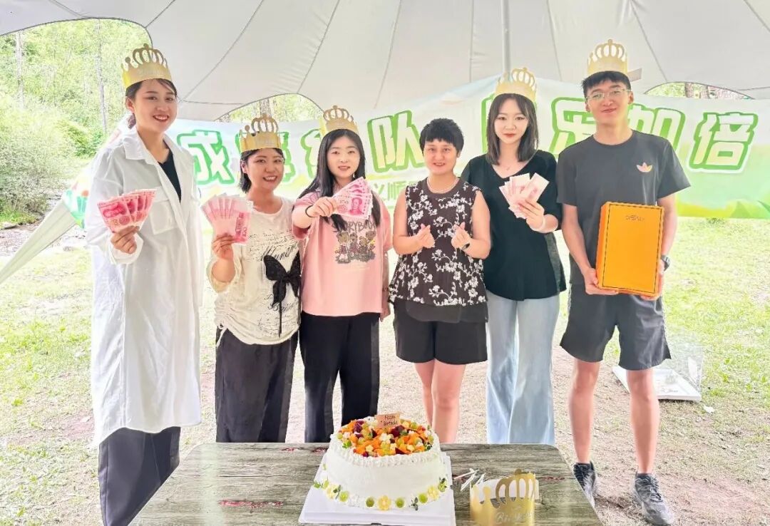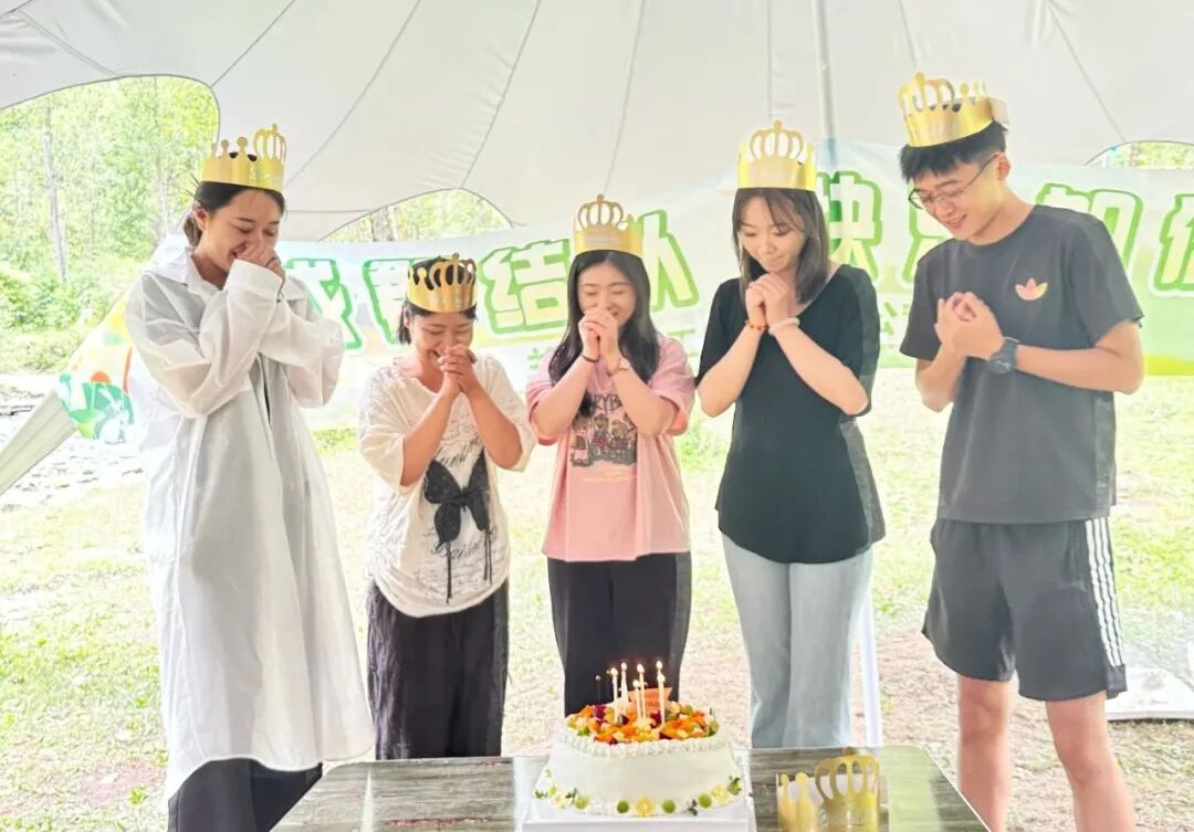最温馨的环节,莫过于为7月份过生日的员工举办的生日庆祝。现场精心布置,当生日歌响起,大家共同为寿星们送上祝福。在大家的祝福声中,许下美好的心愿,一起切开香甜的生日蛋糕,分享着这份特殊的喜悦。