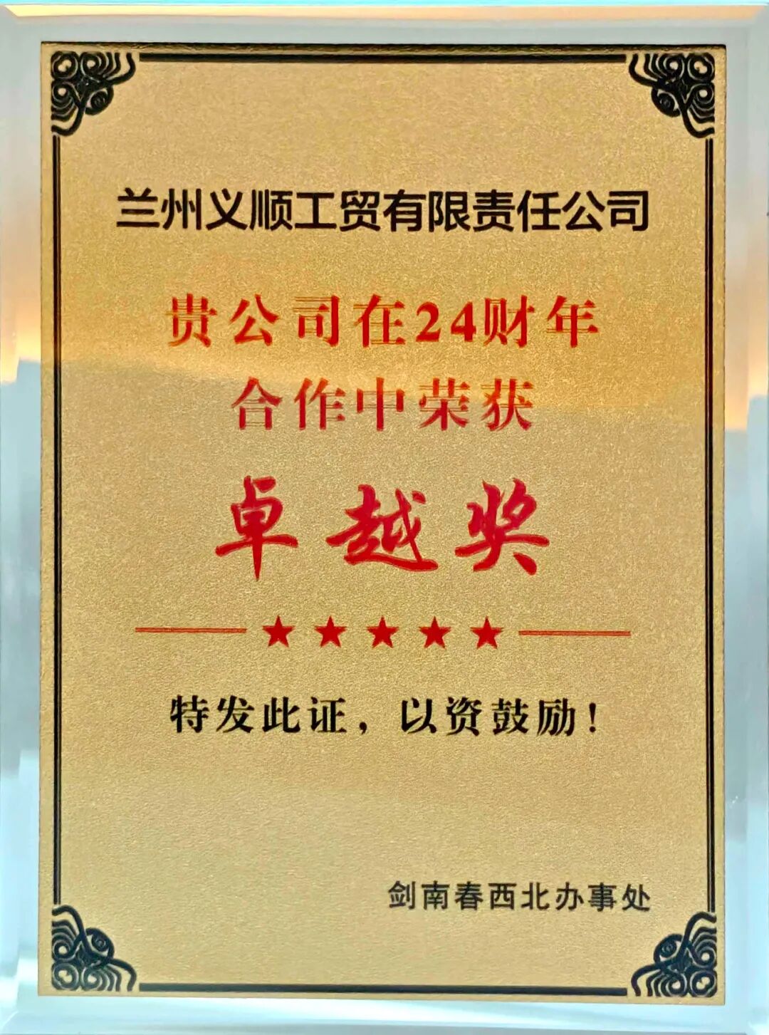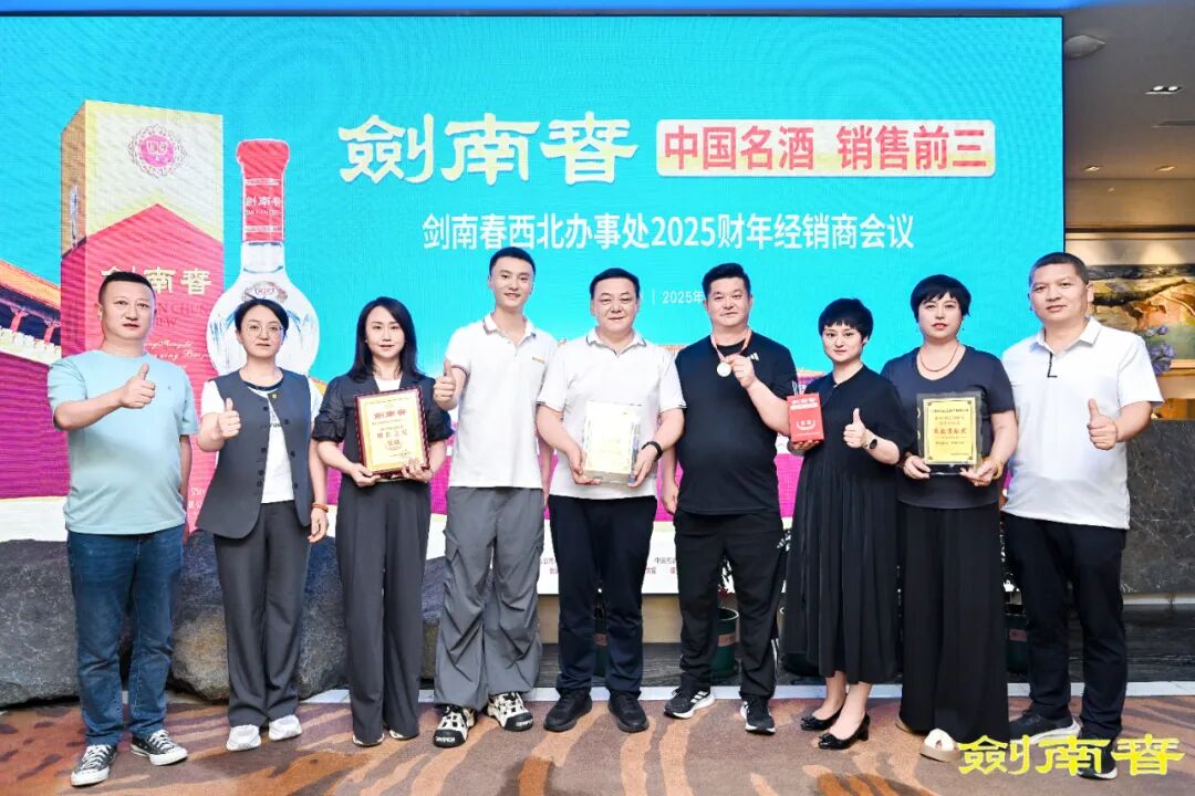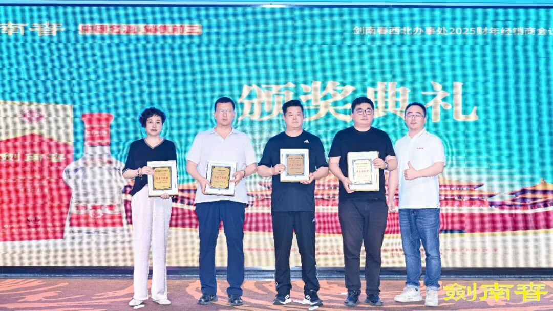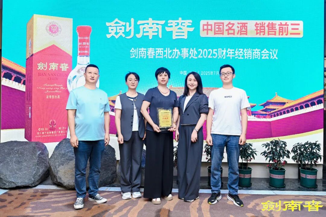 7月25日,剑南春西北办事处2025财年经销商会议在兰圆满召开。会上,兰州义顺工贸有限责任公司荣获剑南春2024财年“卓越奖”,甘肃莲花山土特产有限公司荣获剑南春2024财年“杰出贡献奖”以及2024年流通渠道“增长之星”。